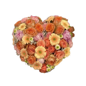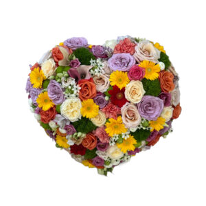 Offrez un hommage empreint d’émotion avec notre cœur floral composé majoritairement de roses et de fleurs de saison. Cette création élégante et harmonieuse, en forme de cœur, symbolise amour, respect et recueillement.